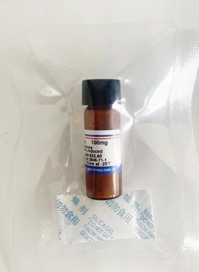 含有25 mg NADPH粉末玻璃瓶中加入0.5 ml或1 ml 10 mM Tris-HCl pH8.0,彻底溶解,即配成50 mg/ml(60 mM)或25 mg/ml(30 mM) NADPH溶液;溶液-20℃可以贮存2周,-80℃可以贮存2个月。可以根据需要适量分装成小管-80℃贮存,每次取一管使用,避免污染和减少冻融次数。