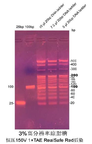 PCR级高分辨率琼脂糖(High Resolution Agarose)对PCR 产物,小片段DNA 具有很高的分辨率,可以和聚丙烯酰胺相媲美,适宜分离 20 bp - 800 bp DNA片段。