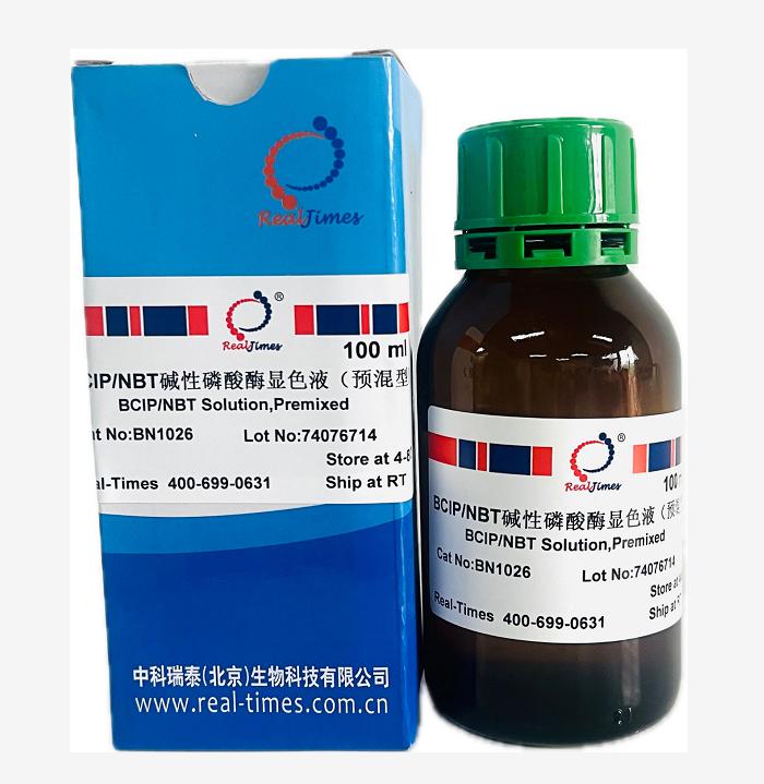 现配现用:BCIP 和 NBT 通常为粉末状(需 - 20℃避光保存),使用前用二甲基甲酰胺(DMF)或水溶解(按说明书比例,如 NBT 50mg/mL、BCIP 50mg/mL),配制成母液后立即稀释到缓冲液中(工作液需当天使用);长期放置会导致底物氧化,出现预沉淀。