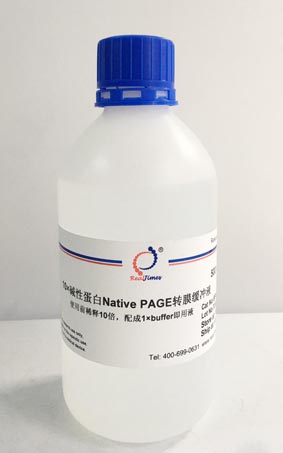 10×碱性蛋白Native PAGE转膜缓冲液适用于碱性蛋白电泳后凝胶上非变性碱性蛋白的转膜。本转膜液配制便捷,稀释后无需调节pH值。缓冲液中不含任何变性剂,保证了转膜中维持蛋白的活性状态。该缓冲液稀释10倍可配成5升即用型1×缓冲液。