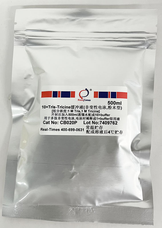 说明:开封后将全部干粉溶于500ml蒸馏水中即配成10×Tris-Tricine缓冲液,电泳时稀释成1×缓冲液即用液,不要调节pH。