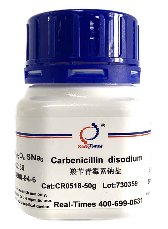 Carbenicillin disodium is a semi-synthetic β-lactam antibiotic that is related to penicillin. Its bactericidal mode of action is analogous to that of benzylpenicillin, which acts on bacteria by inhibiting bacterial cell wall synthesis. Relative to benzylpenicillin, carbenicillin has a relatively greater spectrum of activity against Gram-negative bacteria such as Pseudomonas aeruginosa, but a lower activity against Gram-positive bacteria. Commonly used for the elimination of Agrobacterium species after inoculation.
