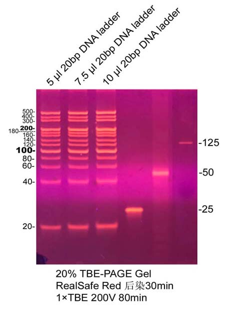 5. 使用范围广泛:可以染色RNA,双链DNA和单链DNA;可以染色琼脂糖凝胶和PAGE凝胶。