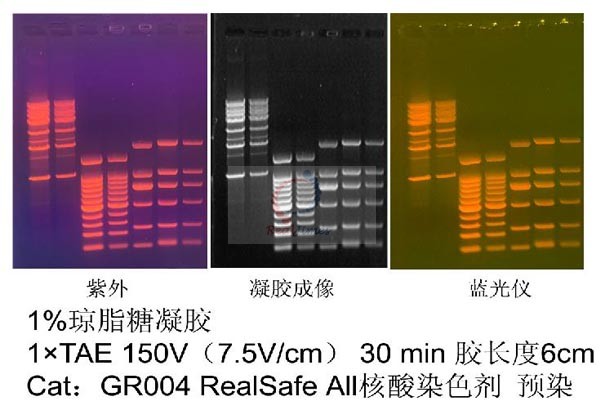 灵敏度高:小分子片段更清晰;染料在胶中迁移度低,电泳后紫外观察不会出现阴阳胶现象。