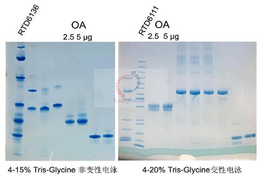 卵清蛋白是一种优质蛋白质,占蛋清蛋白总量的54%-69%,卵清蛋白是典型的球蛋白,分子量为44.5kDa,属含磷糖蛋白,含有四个自由巯基、385个氨基酸残基。这些氨基酸残基相互缠绕折叠形成具有高度二级结构的球型结构,大部分为α-螺旋和β-折叠。卵清蛋白中心有1个二硫键和4个巯基,当加热时暴露出来,通过分子间相互作用使卵清蛋白胶体结构变得更稳定。