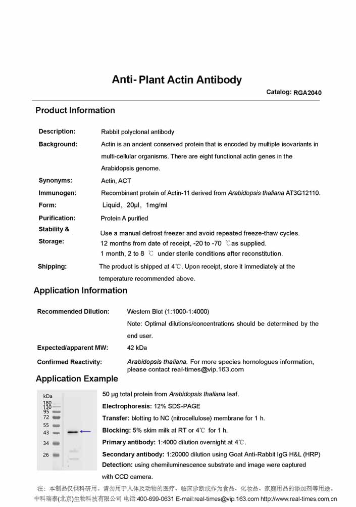 Anti-Plant Actin (兔抗体)
