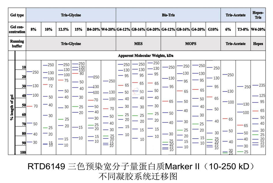 Marker: RTD6149 三色预染宽分子量蛋白质Marker II(10-250 kD)