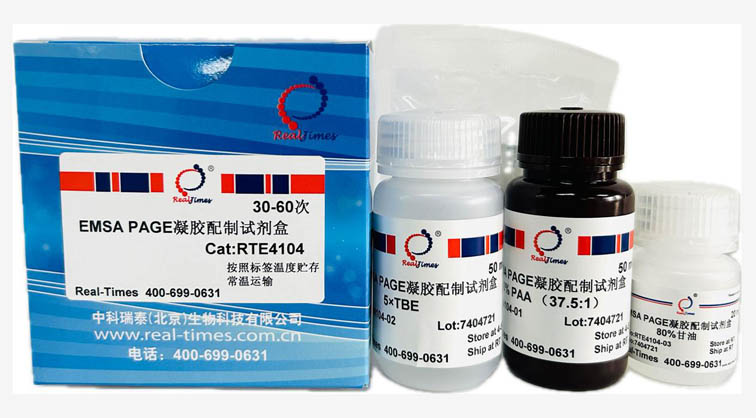 EMSA PAGE凝胶配制试剂盒(PAGE Gel Preparation Kit for PAGE)提供了配制EMSA PAGE凝胶所需的各种试剂,用户只需自备制胶器具和蒸馏水,即可配制不同浓度的EMSA PAGE凝胶。凝胶迁移实验(也称凝胶阻滞实验或电泳迁移率实验)