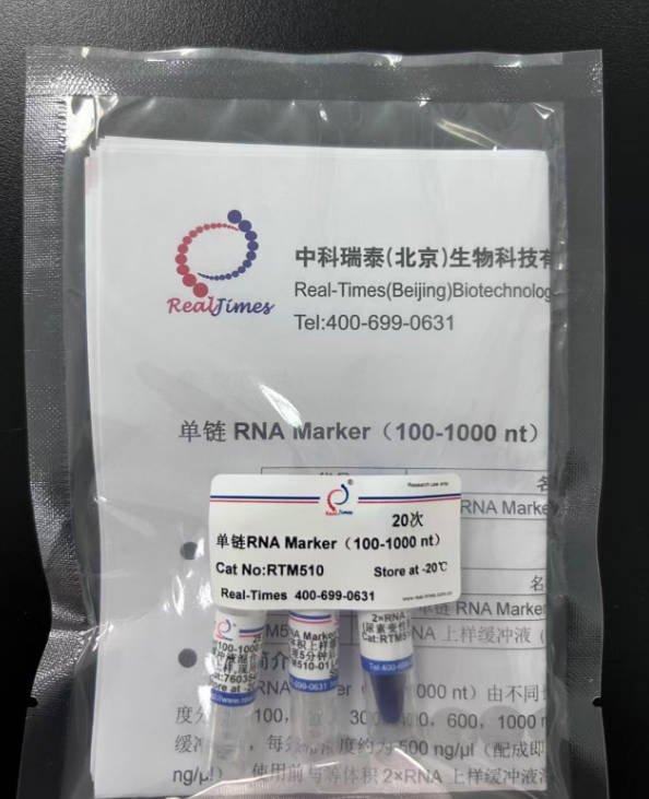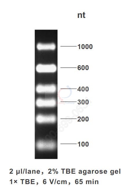 单链RNA Marker(100-1000 nt)由不同长度体外转录的6条单链RNA分子混合而成,长度分别为100,200,300,400,600,1000