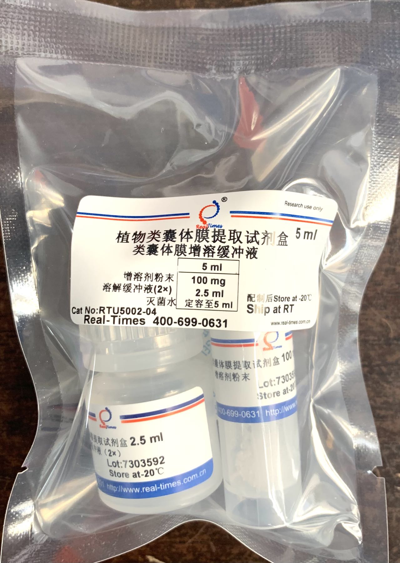 将2.5 ml增溶缓冲液(2×)全部加入到增溶剂粉末中,加入灭菌水定容至5 ml,彻底混匀,即配成5 ml增溶缓冲液,适量分装,-20℃贮存,尽量避免反复冻融。